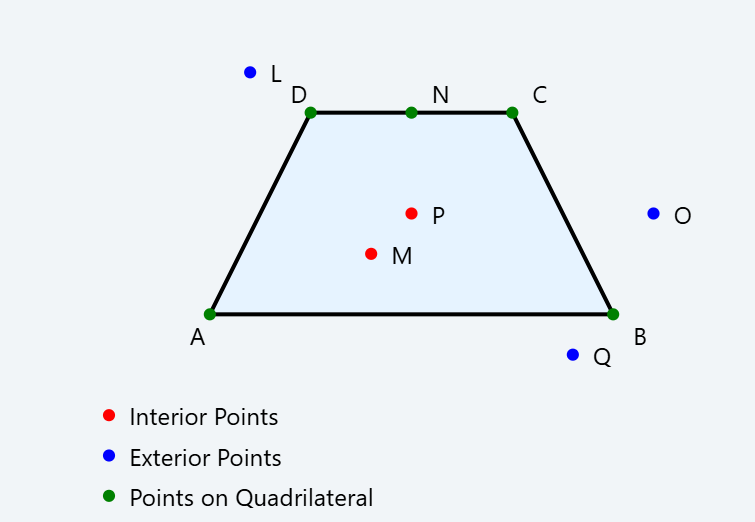 Points that lie on the boundary/perimeter (N, A, B, C, and D) These points are neither interior nor exterior They form the boundary of the quadrilateral