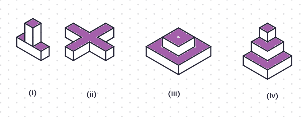 Each Arm: Each of the four arms has 2 squares shaded on its top surface.