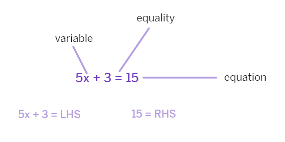 (a) An algebraic equation is an equality involving variables. It has an equality sign. The expression on the left of the equality sign is the Left Hand Side (LHS). The expression on the right of the equality sign is the Right Hand Side (RHS).