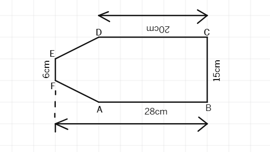 The figure can be divided into three parts: a rectangle and two trapeziums.