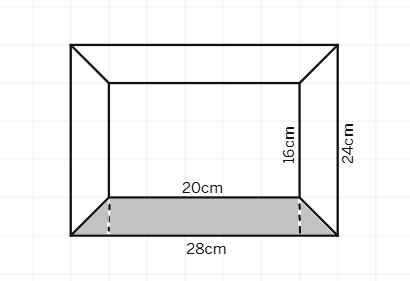 4. Diagram of the adjacent picture frame has outer dimensions 28 cm × 24 cm and inner dimensions 20 cm × 16 cm. Find the area of the shaded part of the frame, if the width of each section is the same.