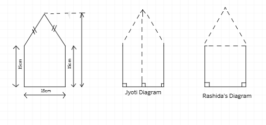 Jyothi divides the pentagon into a square and a triangle.