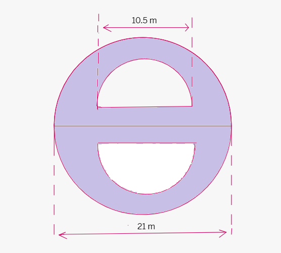 Area of two inner semi-circles = 2 × 13.78π