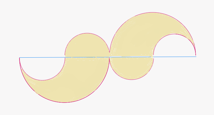 The visible shaded regions are the difference between the large semi-circles and the corresponding small semi-circles.