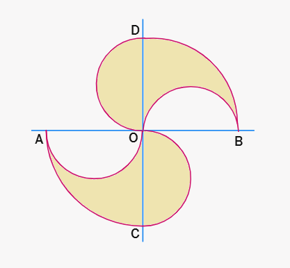 The shaded region consists of four semi-circles.