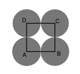 The centers of the four circles form a square with side length 2a.