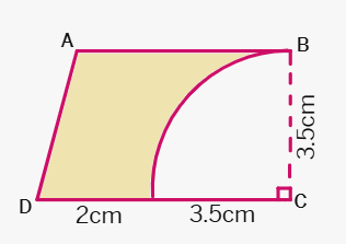 9. From a piece of cardboard, in the shape of a trapezium ABCD, with AB || CD and ∠BCD = 90°, a quarter circle is removed. Given AB = BC = 3.5 cm and DE = 2 cm, calculate the area of the remaining piece of the cardboard. (Take π to be