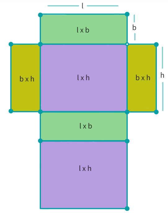 Total surface area = 2 (h × l + b × h + b × l) = 2(lb + bh + hl)