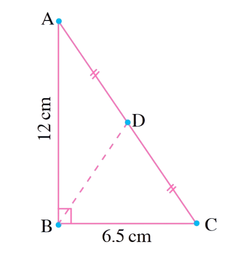 1. In ΔABC, ∠ABC = 90°, AD = DC, AB = 12cm and BC = 6.5 cm. Find the area of ΔADB.