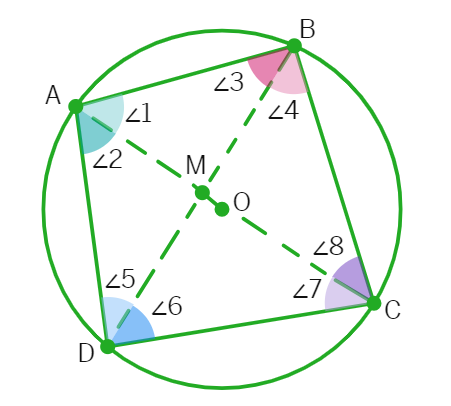 Cyclic Quadrilateral Theorem: If the sum of a pair of opposite angles of a quadrilateral is 180º, the quadrilateral is cyclic.
