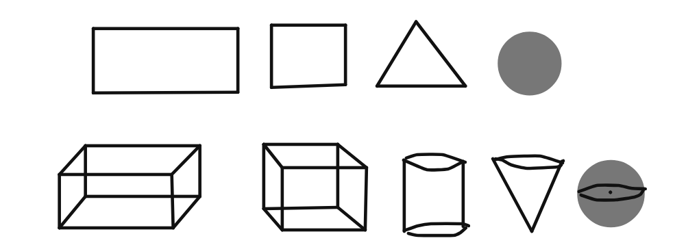 The figures in first line can be easily drawn in our notebooks. These figures have only length and breadth and are known as