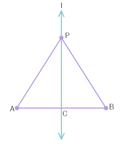 Example 2 : AB is a line segment and line l is its perpendicular bisector. If a point P lies on l, show that P is equidistant from A and B.