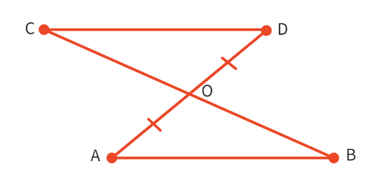 • Consider the triangles ∆ AOB and ∆ DOC: ∠ABO =∠ as they are interior angles with AB || CD and as the transversal