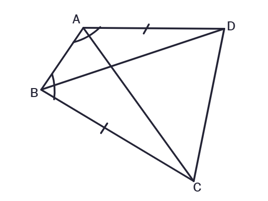 1. In quadrilateral ACBD, AC = AD and AB bisects ∠A. Show that ΔABC ≅ ΔABD. What can you say about BC and BD?