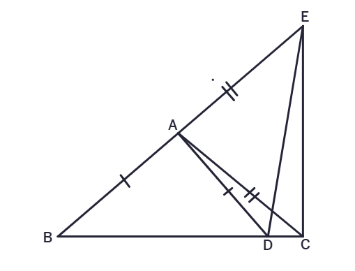 Now, in ΔABD, we observe that AB = AD (by construction).