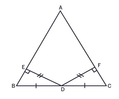 8. In the adjacent figure ΔABC, D is the midpoint of BC. DE ⊥ AB, DF ⊥ AC and DE = DF. Show that ΔBED ≅ ΔCFD.