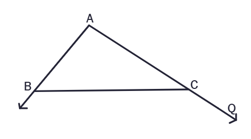 2. In adjacent figure, sides AB and AC of ΔABC are extended to points P and Q respectively. Also, ∠PBC < ∠QCB. Show that AC > AB.